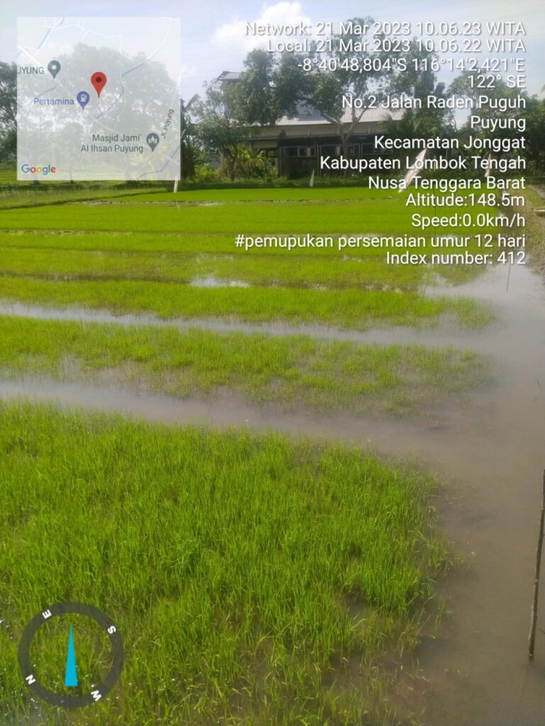 Kegiatan perbanyakan benih padi MK. I 2023. Di UPB Peninjauan hari ini Selasa 21 Maret 2023 telah melaksanakan kegiatan pemupukan persemaian untuk areal tanaman luasan 2.0 Ha. Yang bersumber dari anggaran APBN di lokasi perbanyakan benih padi di Puying Desa Puyung Kec. Jonggat Lombok Tengah yang di laksanakan oleh karyawan UPB Puyung bertujuan untuk mempercepat pertumbuhan dan perkembangan bibit tanaman padi.