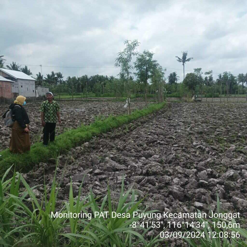 Terakhir, kegiatan monitoring juga mencakup tanaman kedelai di Poktan Bunut Serempek III, Desa Puyung, dengan luas 3 hektar dan varietas Argomulyo. Tanaman kedelai yang berusia 30 hari ini menunjukkan perkembangan yang baik dan diharapkan dapat memberikan hasil yang optimal pada masa panen mendatang.