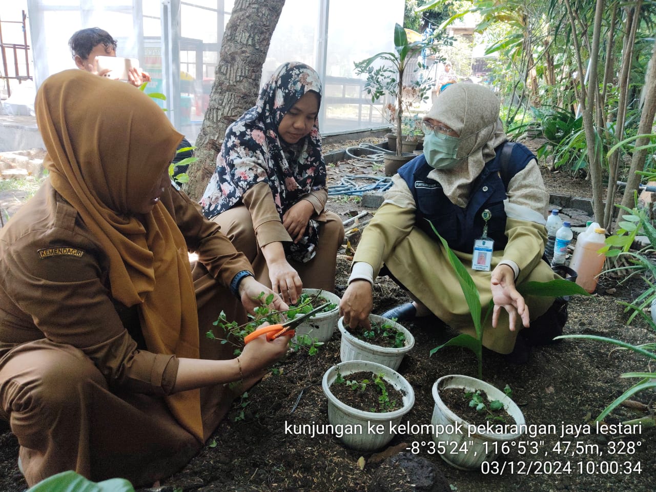 Dalam upaya pendampingan dan koordinasi penyuluhan, Penyuluh Bapeltanbun Wilbin Kota Mataram melaksanakan anjangsana ke kelompok Pekarangan Jaya Lestari dalam rangka mendampingi kelompok menata green house dan pekarangan kelompok bersama dengan penyuluh kecamatan Sekarbela.