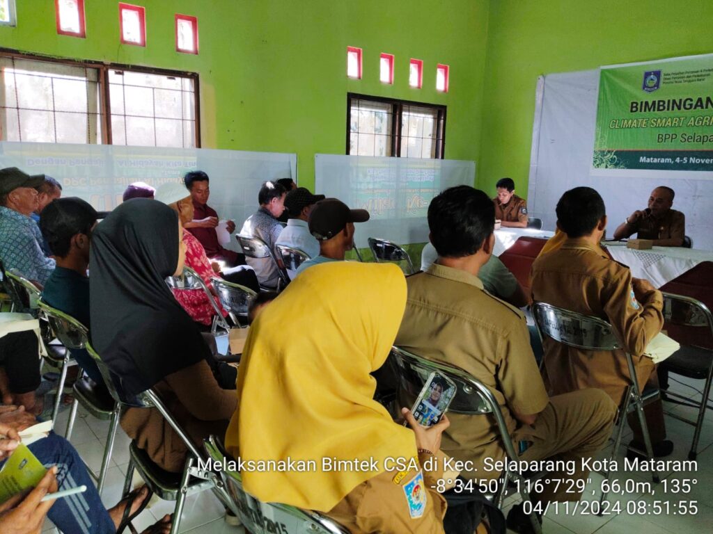 Selasa, 5 November 2024 – Sebagai lanjutan dari Bimtek CSA yang diadakan di Bapeltanbun NTB, kegiatan serupa digelar di BPP Selaparang, Kota Mataram, pada 4–5 November 2024. Bimtek ini diikuti oleh 25 petani dari berbagai wilayah NTB dan bertujuan memperkenalkan teknologi adaptasi perubahan iklim dalam pertanian.