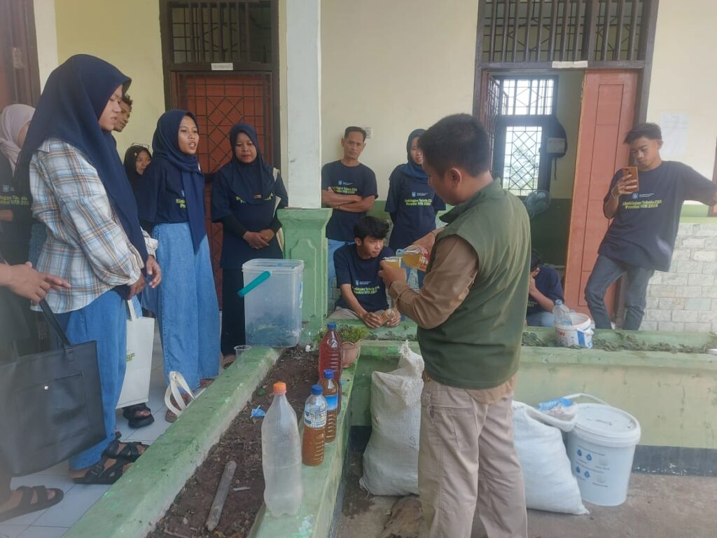 Hari pertama Bimtek dimulai dengan penyampaian teori yang dilanjutkan dengan praktik langsung. Peserta terlibat dalam praktik AWD dan seleksi benih menggunakan larutan garam dan telur. Mereka juga belajar cara membuat biopestisida dari bahan alami seperti daun nimba, daun mahoni, dan kunyit, menggunakan perbandingan air yang tepat untuk hasil maksimal. Tak ketinggalan, mereka juga mempelajari cara membuat starter untuk pupuk kompos.