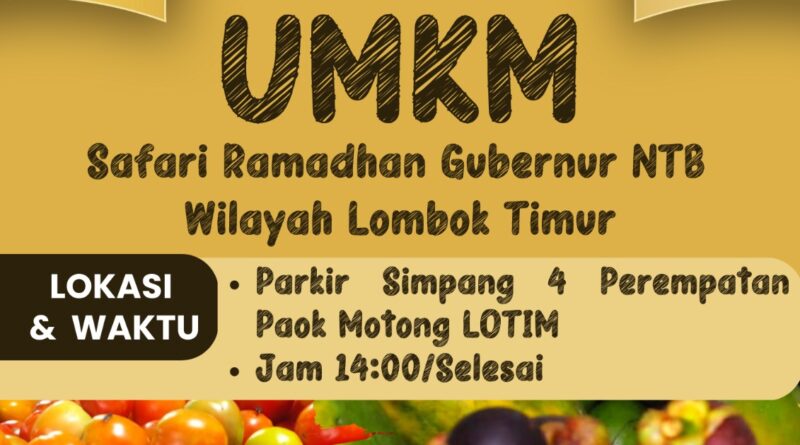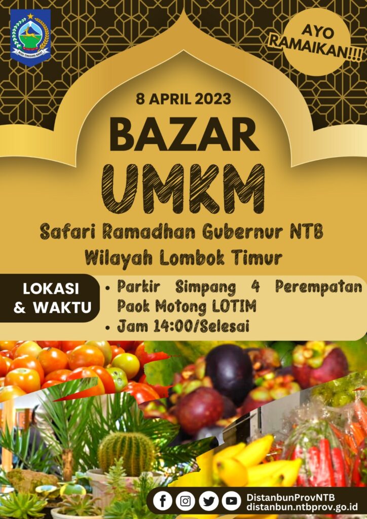 Mari ramaikan Bazar Pangan Murah dalam rangka Safari Ramadhan Gubernur NTB pada hari Sabtu, 8 april 2023 di Parkir Simpang 4 Perempatan Paok Motong Lotim. Tidak hanya itu Bazar UMKM ini juga ada kegiatan seru lainnya, jadi tunggu apalagi ayo datang ke Bazar UMKM Distanbun provinsi NTB