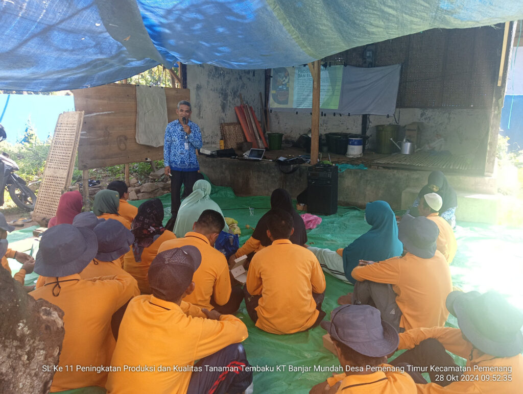 Senin, 28 Oktober 2024 – Dalam rangka memperingati Hari Sumpah Pemuda, tim Bapeltanbun Provinsi Nusa Tenggara Barat (NTB) melanjutkan program Sekolah Lapang (SL) Peningkatan Produksi dan Kualitas Tanaman Tembakau di Kelompok Tani Banjar Mundah, Desa Pemenang Timur, Kecamatan Pemenang.