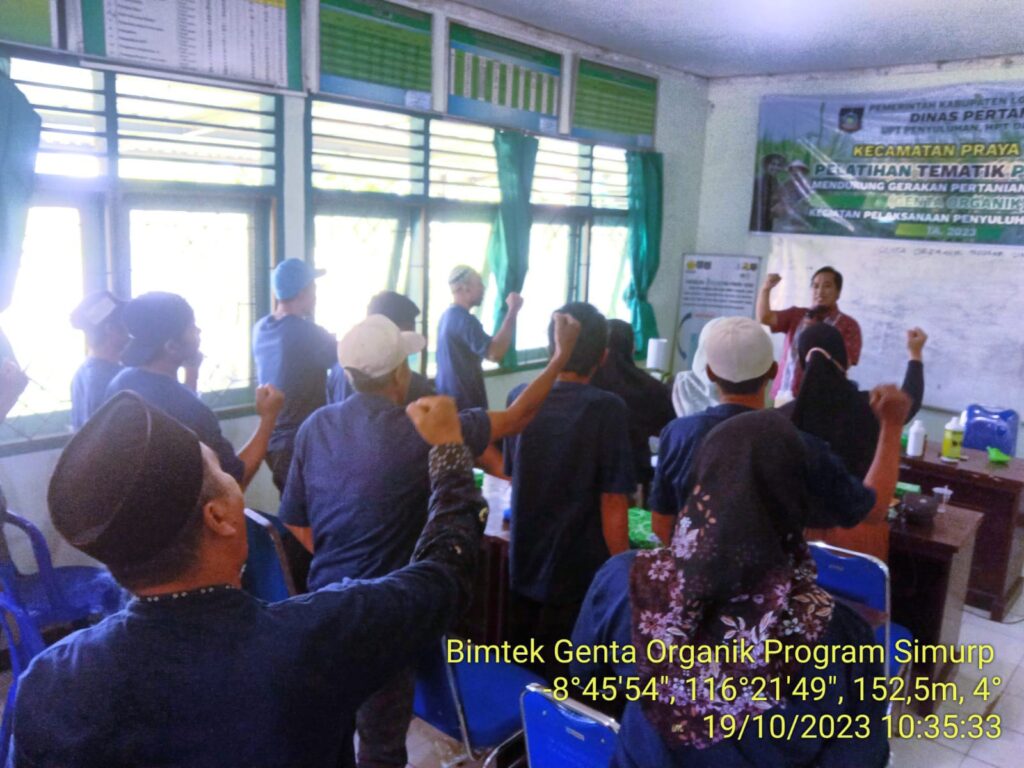 Pada intinya, dalam gerakan ini juga terus mendorong pengembangan sistem produksi pertanian yang mengandalkan bahan-bahan alami. Untuk mensukseskan program tersebut dalam Program SIMURP juga dilaksanakan Bimtek CSA SIMURP mendukung Genta Organik yang dilaksanakan di BPP Mujur Kecamatan Praya Timur, Kabupaten Lombok Tengah selama 3 hari mulai dari tanggal 17 s/d 19 Oktober 2023 dengan peserta berjumlah 25 orang yang berasal dari pengurus dan anggota Kelompoktani yang ada di Kecamatan Praya Timur serta dengan pendampingan oleh Penyuluh dan POPT.