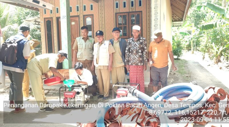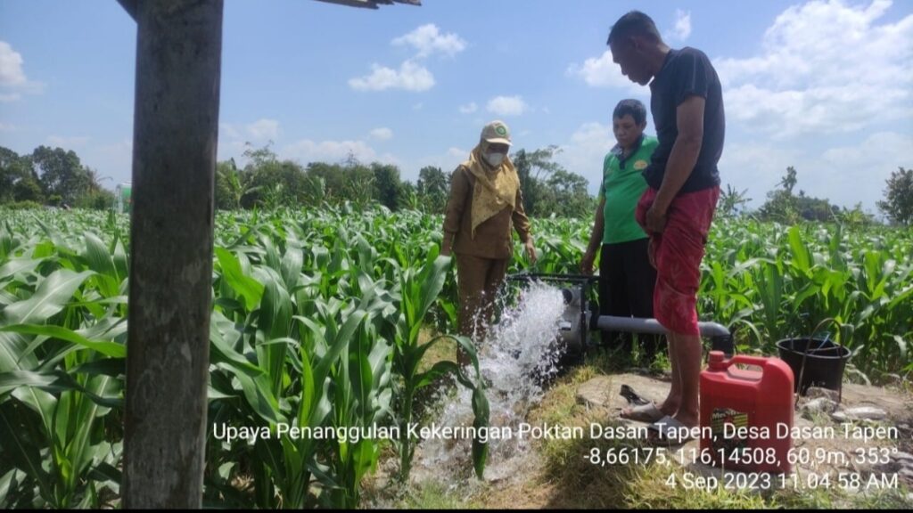 Upaya yang dilakukan yaitu kegiatan Pompanisasi atau mengairi areal terdampak kekeringan menggunakan Pompa. Tim dari BPTP NTB, dengan sigap memberikan pinjam pakai pompa sekaligus membantu penyediaan bahan bakar sebagai upaya penanganan. Kegiatan ini dilaksanakan pada tanggal 04 September 2023. Tidak hanya di Desa Dasan Tapen, penanganan juga dilakukan di Desa Tempos kec. Gerung.