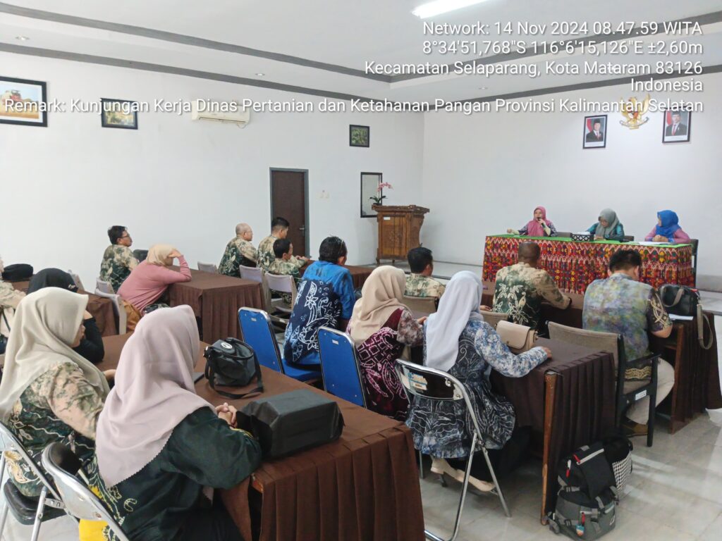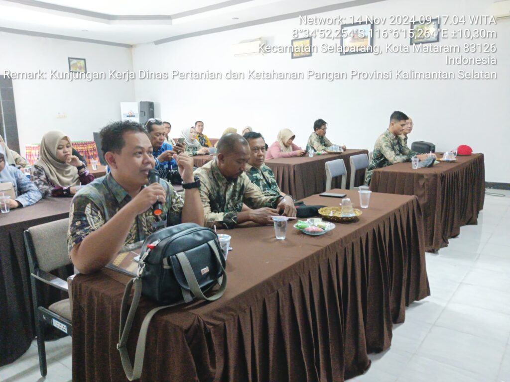 14 November 2024 – Dinas Pertanian dan Perkebunan Provinsi NTB menerima kunjungan kerja dari Dinas Pertanian dan Ketahanan Pangan Provinsi Kalimantan Selatan, yang tertarik untuk mempelajari mekanisme pengawasan dan penyaluran pupuk subsidi di NTB. Kunjungan ini bertujuan mencegah terjadinya penyelewengan dalam distribusi pupuk subsidi pada tingkat distributor dan pengecer.