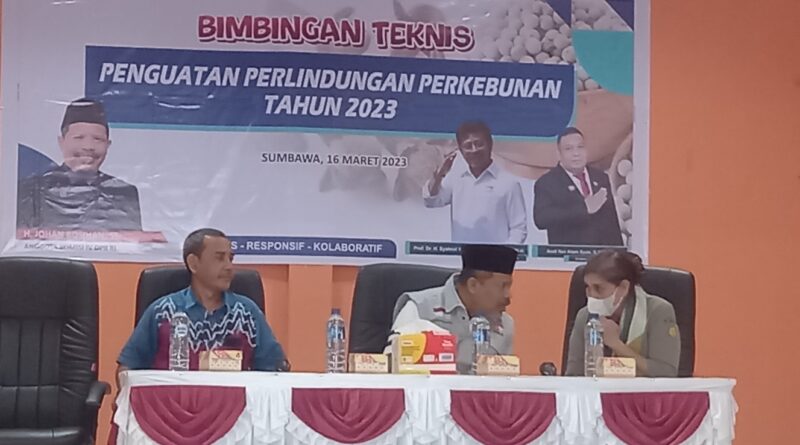 Kamis, 17 – 18 Maret 2023, Kementerian Pertanian Melalui Direktorat Jendral Perkebunan, Balai Perbenihan dan Proteksi Tanaman Perkebunan Prov. NTB, Dinas Pertanian Kabupaten Sumbawa dan Anggota Komisi IV DPR RI dan kelompok tani pelaku usaha perkebunan berkolaborasi melakukan Kegiatan bimbingan teknis penguatan perlindungan perkebunan di Labuan Badas Kabupaten Sumbawa.