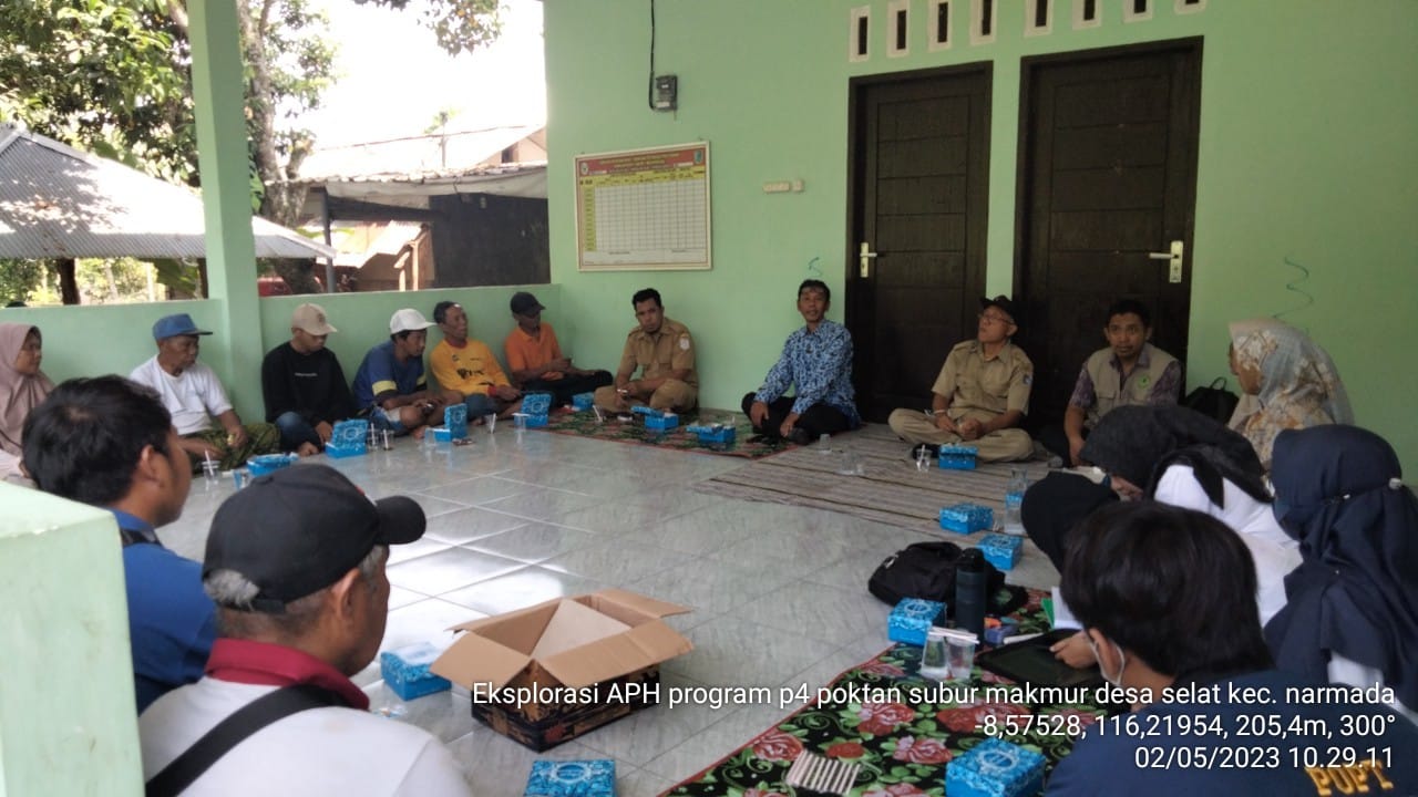 Kegiatan ini merupakan rangkaian program Pemberdayaan Petani dalam Pemasyarakatan PHT (P4) yang di alokasikan ke provinsi NTB melalui BPTP oleh Direktorat Perlindungan Tanaman Pangan. Sebelum melakukan kegiatan eksplorasi APH, tim BPTP NTB memberikan arahan. Dalam kegiatan ekplorasi ini, dihadiri langsung oleh kepala Laboratorium Pengamat Hama dan Penyakit (LPHP) Narmada, Tim Perlindungan Tanaman Pangan, Koordinator POPT Lombok Barat, POPT dan PPL. Setelah pemaparan, petani kemudian menuju lokasi eksplorasi yang ada di dekat saung tempat pertemuan.