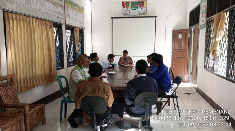 Rapat koordinasi dan evaluasi perkembangan OPT (Organisme Pengganggu Tanaman), DPI (Dampak Perubahan Iklim), realisasi LTT (Luas Tambah Tanam), Pengawasan dan peredaran pupuk bersubsidi dan pestisida adalah sebuah kegiatan rutinitas mingguan yang berlansung setiap minggunya di UPTD KPPP Kecamatan Pemenang Kabupaten Lombok Utara, di hadapan peserta rapat yang di pimpin oleh kepala UPTD KPPP Kecamatan Pemenang, dan peserta rapat Koordinator PPL, PPL se Kecamatan Pemenang, dan dari unsur peternakan.