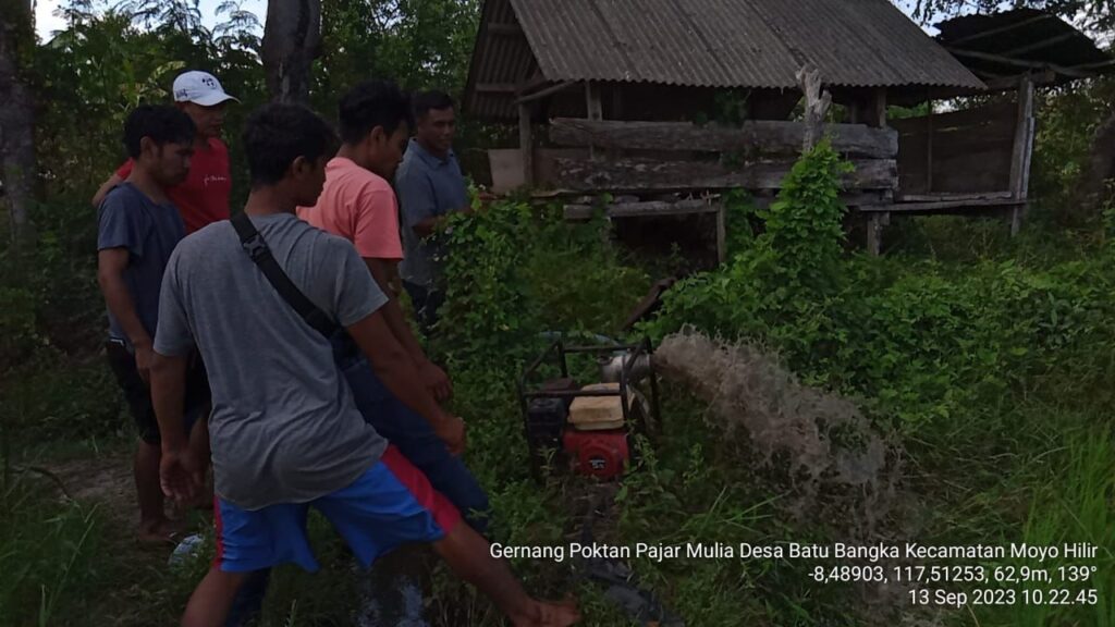 Tim Perlindungan Tanaman Pangan (PTP) Balai Perlindungan Tanaman Pertanian (BPTP) Provinsi Nusa Tenggara Barat (NTB) melakukan gerakan penanganan (GERNANG) dampak kekeringan di Kabupaten Sumbawa, tepatnya di Kelompok Tani (POKTAN) Pajar Indah Desa Batu Bangka Kecamatan Moyo Hilir.