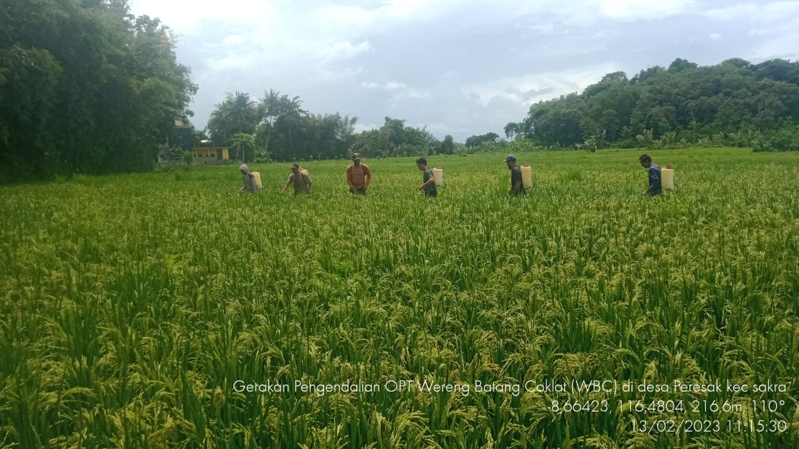 Serangan WBC ini terjadi di Poktan Pade Suka Desa Peresak Kecamatan Sakra intensitas serangan 25 % populasi 22 ekor perumpun luas serangan 2 ha varietas Ciliwung, umur tanaman 80 hst, luas terancam 10 ha, luas pengendalian 5 ha, bahan pengendali menggunakan bahan aktif Buprofezin
