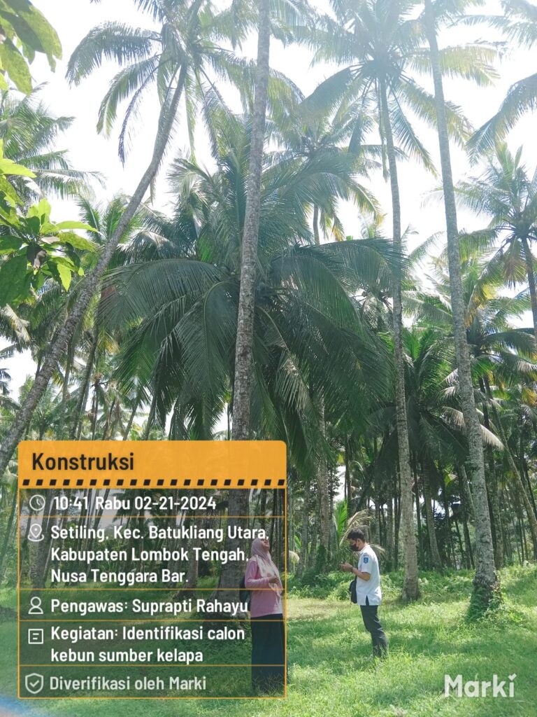 Pada hari Rabu, 21 Februari 2024, dilakukan kegiatan identifikasi calon kebun sumber benih kelapa di Dusun Petikus, Setiling, Lombok Tengah oleh tim Pengawas Benih Tanaman Perkebunan Provinsi NTB. Kegiatan identifikasi dilakukan dengan melakukan penilaian pada lokasi kebun dan tanaman secara umum, termasuk jumlah tandan, buah per pohon, warna buah, kesehatan tanaman, hingga produksi kelapa. Kegiatan ini bertujuan untuk memenuhi kebutuhan akan benih kelapa yang bermutu dan bersertifikat, khususnya di wilayah Nusa Tenggara Barat dan skala Nasional secara umum.