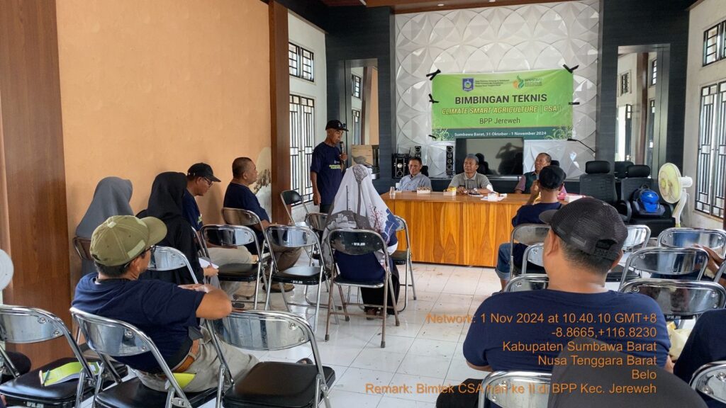 Jereweh, 31 Oktober – 1 November 2024 – Balai Pelatihan Pertanian dan Perkebunan (Bapeltanbun) Provinsi NTB mengadakan Bimbingan Teknis (Bimtek) tentang Climate Smart Agriculture (CSA) di BPP Kecamatan Jereweh, Kabupaten Sumbawa Barat. Kegiatan ini diikuti oleh 25 petani lokal dan bertujuan untuk memperkuat pengetahuan serta keterampilan mereka dalam menghadapi tantangan perubahan iklim.