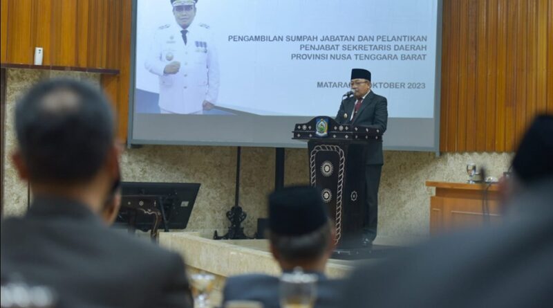 Drs. H. Lalu Gita Ariadi, M.Si, Penjabat Gubernur NTB, melakukan pengambilan sumpah Jabatan dan melantik Drs. H. Fathurrahman, M.Si sebagai Penjabat Sekretaris Daerah Provinsi NTB sesuai dengan Keputusan Gubernur Nusa Tenggara Barat Nomor: 821.2/939/BKD/2023 tanggal 4 Oktober 2023 ditetapkan sebagai Penjabat Sekretaris Daerah Provinsi Nusa Tenggara Barat.