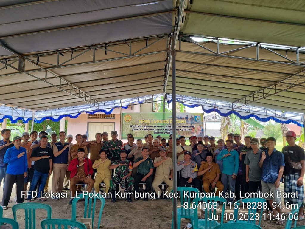BPP Kuripan Kabupaten Lombok Barat sebagai pelaksana program Genta Organik Tahun 2023 melaksanakan kegiatan Farmer Field Day (FFD)/Hari Temu Lapang Petani dilokasi LL Kelompoktani Kumbung I Kecamatan Kuripan Kabupaten Lombok Barat yang dihadiri oleh Kepala Bapeltanbun Provinsi NTB (H. Hendro Yulistiono, SP.,M.Si), Kepala Bidang Penyuluhan Kabupaten Lombok Barat, Kepala BP3K Lombok Barat, Penyuluh Provinsi wilbin Lombok Barat, Penyuluh Kabupaten Lombok Barat, Penyuluh dan POPT Kuripan,Babinsa, Babinkamtibmas dan Kelompoktani pelaksana kegiatan Genta Organik.