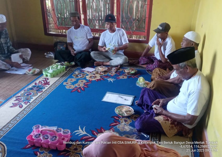 Balai Pelatihan Pertanian dan Perkebunan NTB selaku PPIU dan Penyuluh Bapeltanbun dalam mendampingi penerima manfaat program SIMURP di Lombok Tengah di 144 Poktan dalam menerapkan teknologi CSA. Dalam pelaksanan program SIMURP Tahun 2023 dilaksanakan kursus tani penerapan teknologi CSA padi pada Kelompok tani (Poktan) Inti Kegiatan SIMURP tahun 2023.