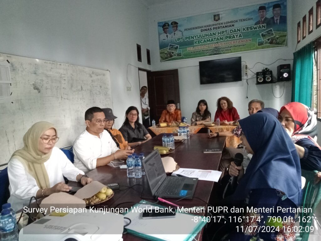 Pada Kamis, 11 Juli 2024, dalam rangka Mid Term Review (MTR) dan persiapan kunjungan Managing Director of Operations World Bank, Mrs. Anna Bjerde, bersama Menteri PUPR dan Menteri Pertanian yang dijadwalkan pada 24 Juli 2024, Kabupaten Lombok Tengah, Provinsi Nusa Tenggara Barat menjadi fokus kegiatan CSA SIMURP di Indonesia. Persiapan awal dimulai dengan rapat di BWS NT I, dihadiri oleh perwakilan Bank Dunia, Kementerian PUPR, dan Kementerian Pertanian. Diskusi ini bertujuan untuk menyelaraskan persiapan teknis dan logistik, memastikan kunjungan berjalan lancar dan memenuhi harapan para tamu penting tersebut.