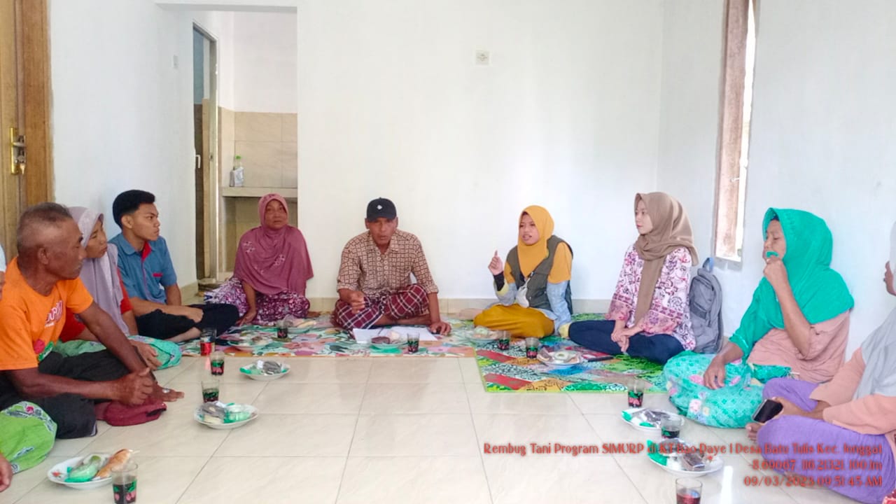 Untuk memulai kegiatan Tahun 2023 ini diadakan Rembug Tani di 144 Poktan di 6 BPP Program SIMURP dan dalam kesempatan hari ini telah berlangsung Rembug Tani di beberapa Poktan seperti (1). Poktan Bersatu Maju, Kelurahan Sasake, Kecamatan Praya Tengah; (2). Poktan Hidup Baru I Desa Setanggor, Kecamatan Praya Barat; (3).Poktan Bao Daye I Desa Batu tulis Kecamatan Jonggat; (4). Poktan Riuk Reme Desa Sukaraja, Kecamatan Praya Timur.