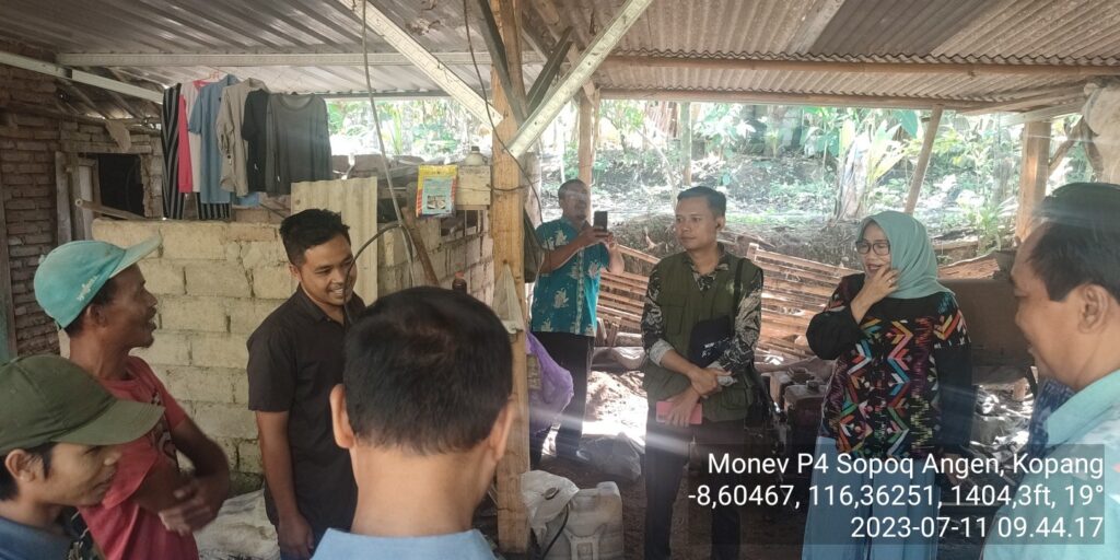 Tujuan pertama monev, yaitu penerima manfaat Program Pemberdayaan Petani dalam Pemasyarakatan PHT (P4) yang ada di Desa Bebuak. Di Poktan Ini petani sudah melaksanakan kegiatan perbanyakan. Di lokasi kelompok tani, terlihat tumpukan trikokompos yang di produksi.