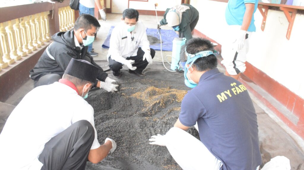 Setelah merata, akan dilakukan rosting selama 2 atau 3 hari dimana setiap harinya dilakukan penyiraman 5 atau 6 kali bolak balik untuk menghasilkan benih menjadi bekarat.