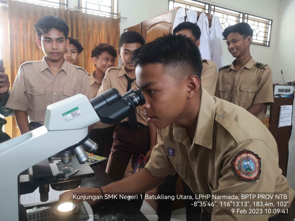 Siswa Kelas X SMK Negeri 1 Batukliang Utara melakukan kunjungan ke Laboratorium Hama Penyakit Tumbuhan Narmada, UPTD Balai Perlindungan Tanaman Pertanian.