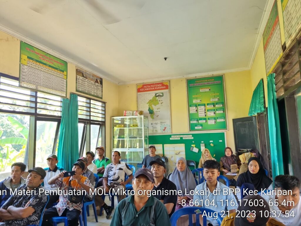 Dalam rangka pelaksanaan Genta Organik bertempat BPP Kuripan diadakan sekolah lapang kursus tani lanjutan dengan materi pembuatan Mikro Organisme Lokal (MOL) yang dihadiri oleh Penyuluh Provinsi Bapeltanbun NTB, Penyuluh Kabupaten Lombok Barat, Koordinator BPP Kuripan, Penyuluh dan POPT Kuripan serta kelompoktani genta organik yang berada di desa Kuripan Utara dan Jagaraga.