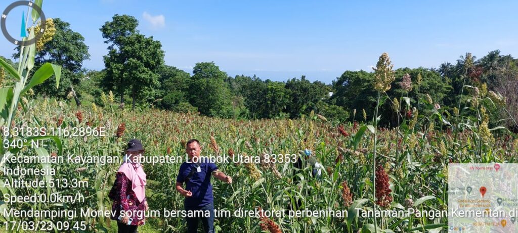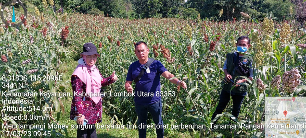 Pada Jum’at tanggal 17 Maret 2023 Kepala Balai Benih Induk Pertanian (BBIP) bersama kasi pangan mendampingi Direktorat Perbenihan Tanaman Pangan dalam rangka monitoring dan evaluasi kegiatan perbanyakan benih shorgum yang berlokasi di Santong Desa Santong Kec. Kayangan Kabupaten Lombok Utara. Untuk memantau pertumbuhan dan perkembangan tanaman shorgum yang menjadi program pemerintah pusat kedepannya dengan menambah luasan areal tanam.