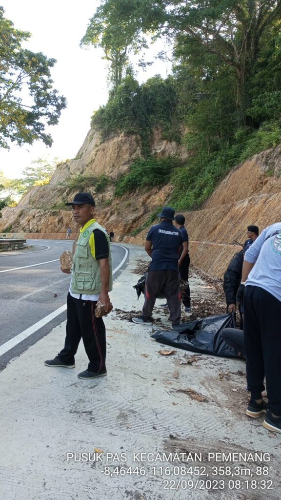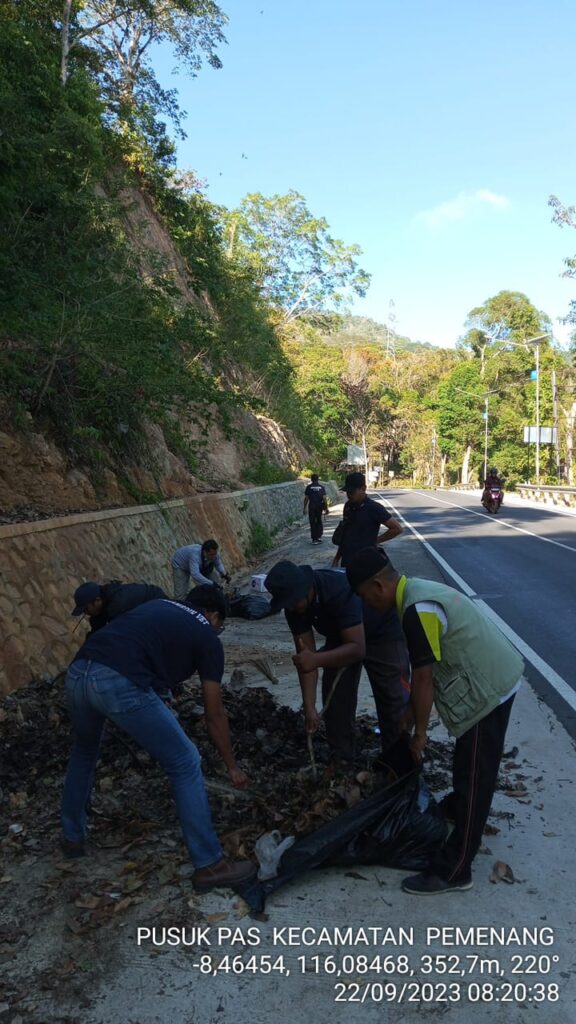 Dalam satu agenda yaitu membersihkan tumpukan sampah yang terbawa arus air hujan yang ada di sepanjang jalan Pusuk Pas, dengan teknik memisahkan sampah PLASTIK dan sampah ORGANIK yang berserakan di sepanjang bahu jalan. Tujuan dari kegiatan ini yaitu menciptakan suasana kenyamanan berkendara di sepanjang jalan menuju Kabupaten Lombok Utara.