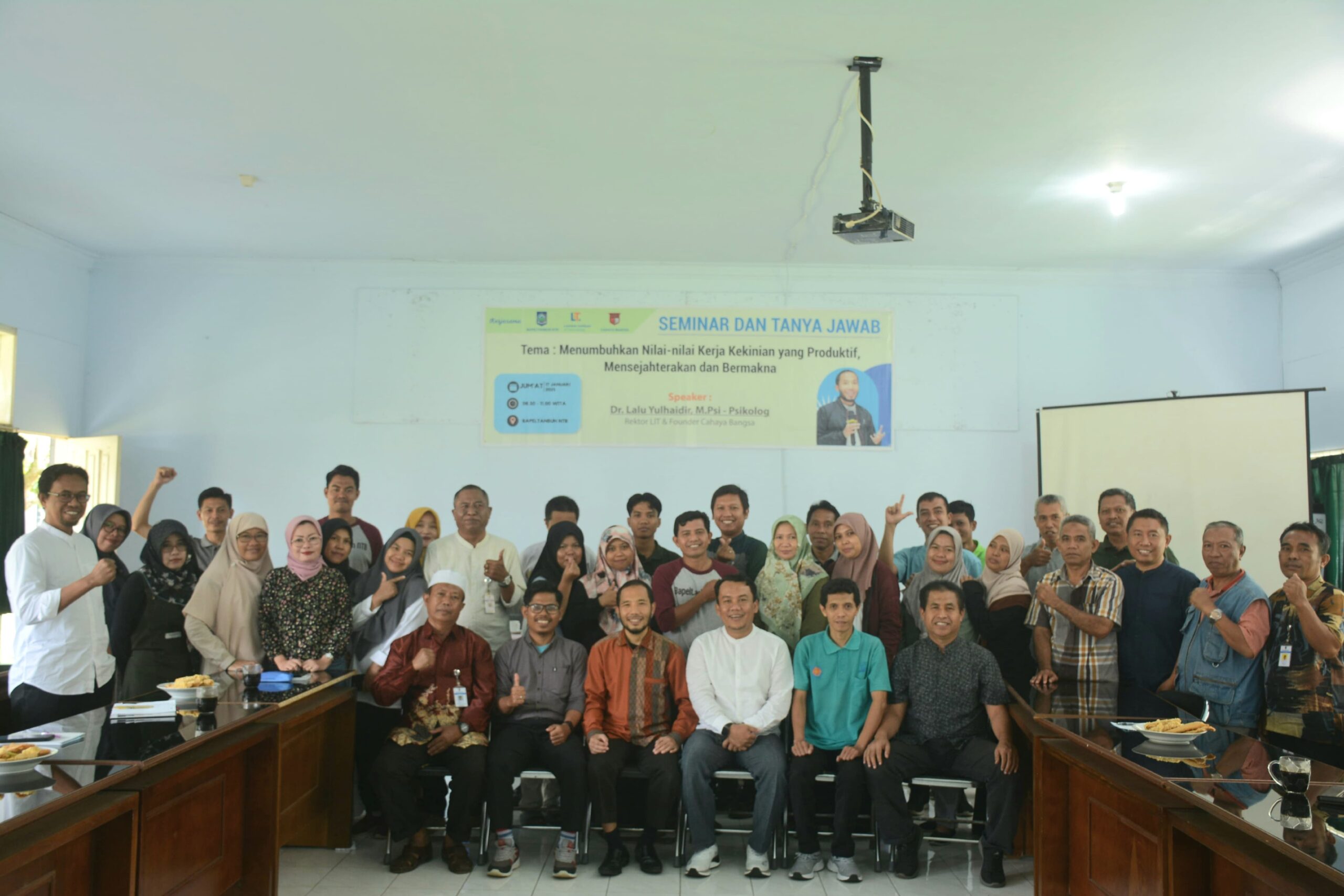 Balai Pelatihan Pertanian dan Perkebunan (BAPELTANBUN ) NTB menghadirkan Seminar dan Tanya Jawab mengangkat tema Menumbuhkan Nilai – Nilai Kerja Kekinian yang Produktif, Mensejahterakan dan Bermakna dengan menghadirkan Narasumber Dr. Lalu Yulhaidir, M.Psi (Psikolog) sekaligus Rektor LIT dan Founder Cahaya Bangsa bertempat di BAPELTANBUN NTB.