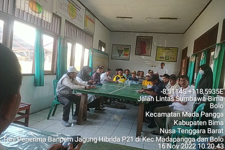 Pengawas Benih Tanaman UPTD BPSBP Provinsi NTB mendampingi Tim Pusat dari Direktorat Perbenihan pada kegiatan monitoring dan evaluasi terhadap bantuan benih padi Inbrida Varietas Inpari 32 HDB berlabel ungu milik UD Makmur Sejahtera, Jember – Jatim dan bantuan benih jagung Hibrida P21 milik PT Sinar Kumala Persada, Temanggung – Jateng di Kabupaten Bima pada tanggal 16 Nopember 2022.