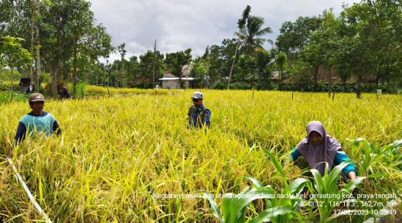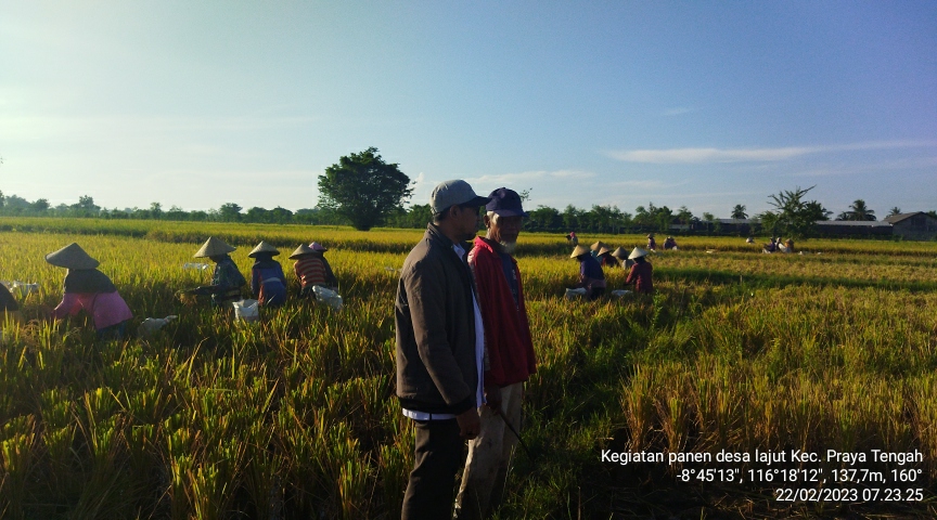 Monitoring dan pemantauan kegiatan panen di beberapa kelompok tani dan desa yang ada di Kecamatan Praya Tengah dengan berbagai macam cara panen diantaranya menggunakan combine harvester dan power trashing.