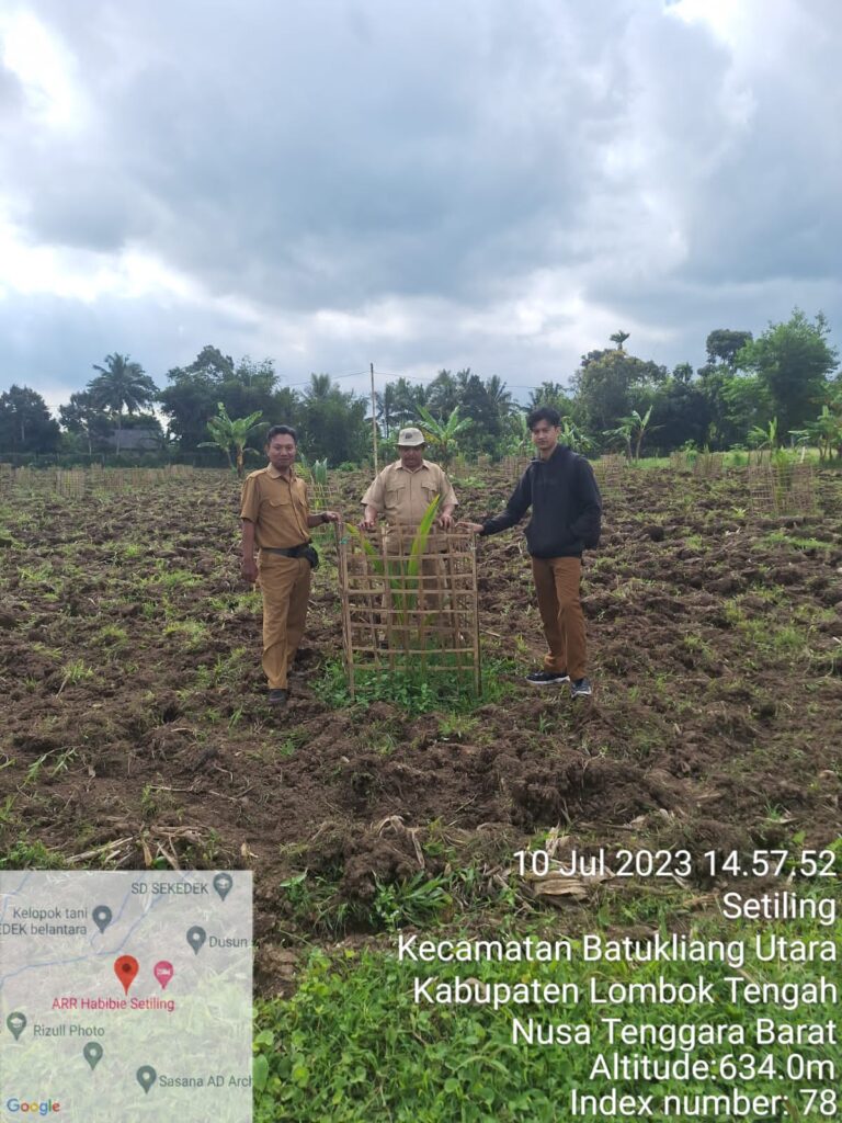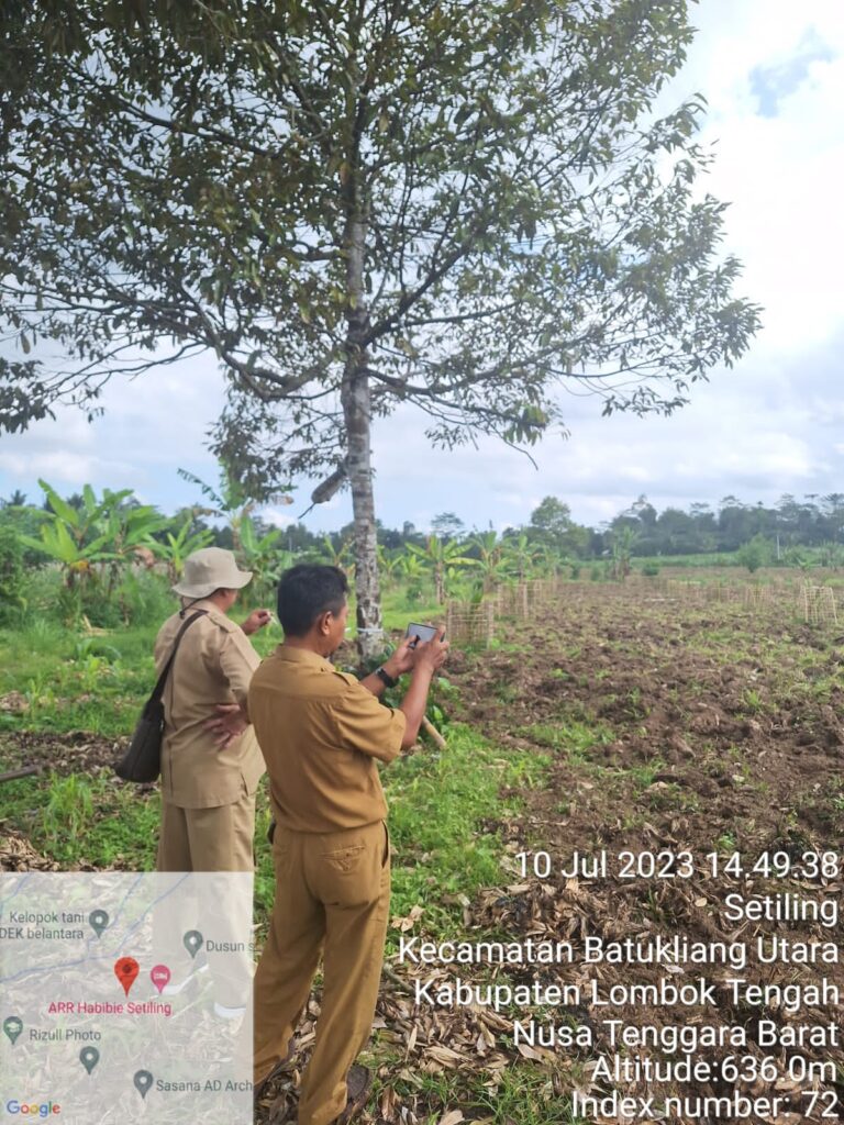 Tim Perbenihan Balai Perbenihan dan proteksi tanaman perkebunan Prov. NTB melakukan monitoring perkembangan kelapa varietas genjah di lokasi Stiling Kecamatan Batukliang Utara, Lombok Tengah.