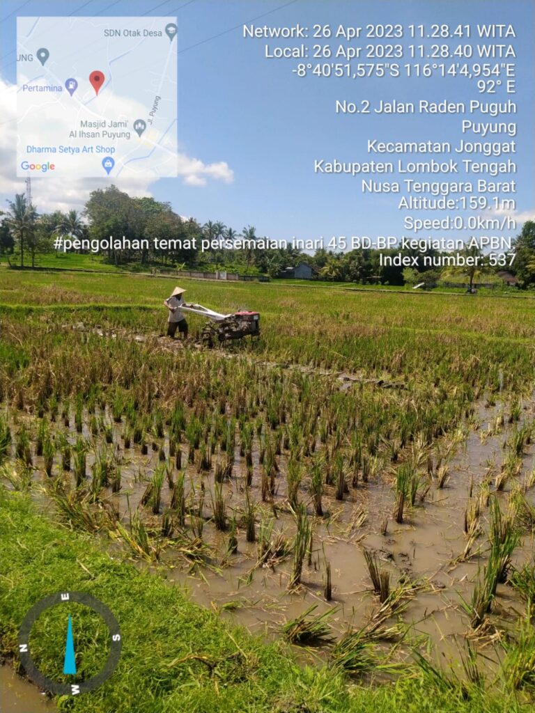 Kegiatan perbanyakan benih padi MK. I 2023. Di UPB Puyung hari ini Kamis tanggal 27 April 2023 melaporkan bahwa telah melaksanakan kegiatan pengolahan tanah persiapan persemaian tanggal 26 April 2023 untuk persiapan tanam seluas 1.0 ha yang bersumber dari anggaran APBN di lokasi perbanyakan benih padi di Puyung Desa Puyung Kec. Jonggat Lombok Tengah yang di laksanakan oleh yang di koordinir oleh tenaga tekhnis UPB Puyung. bertujuan untuk mempermudah dalam proses pertumbuhan dan perkembangan bibit tanaman padi.