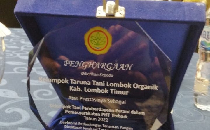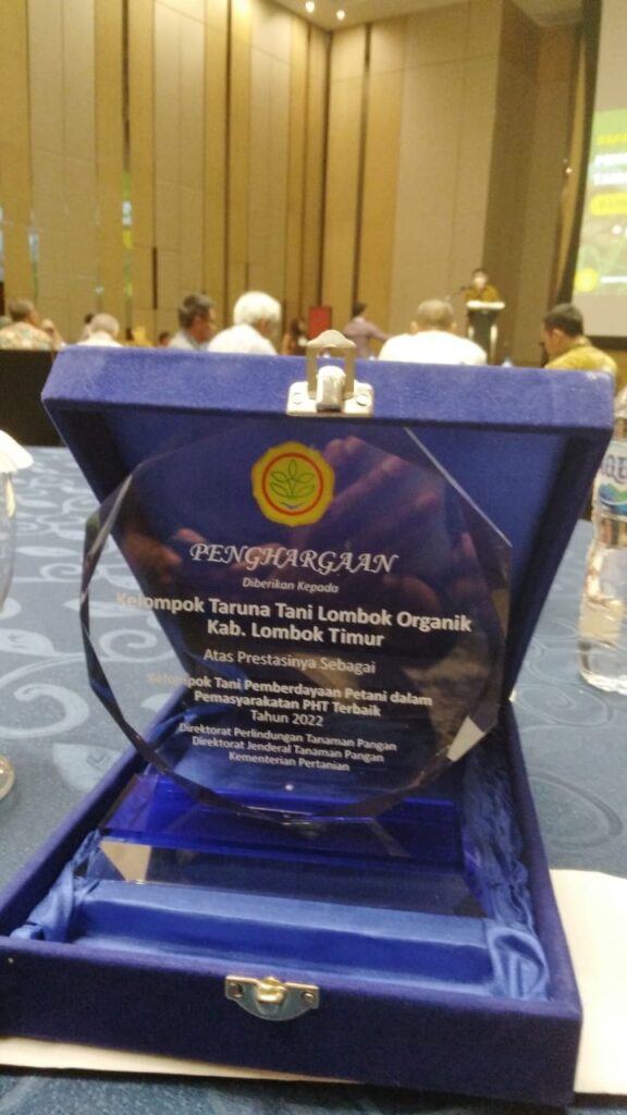 Bertempat di Hotel Marriotte-Batam Direktur Perlindungan Tanaman Pangan di dampingi Kepala Balai Perlindungan Tanaman Pertanian Prov NTB Ir. Baiq Rahmayati, M.Si memberikan penghargaan kepada Kelompok Tani Lombok Organik atas prestasinya menjadi kelompok terbaik Se Indonesia dalam program Pemberdayaan Petani dalam Pemasyarakatan PHT (P4).