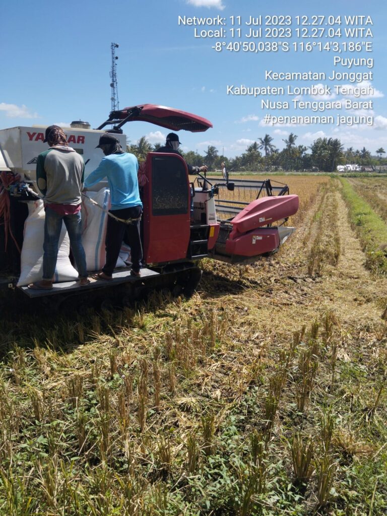 Kegiatan perbanyakan benih padi MK. I 2023. di UPB Puyung, Hari ini Selasa 11 Juli 2023 sedang melaksanakan panen menggunakan tenaga Combain padi varietas Ciherang dengan luasan 0.50 ha, dengan kelas benih BS-BD yang bersumber dari anggaran APBN.