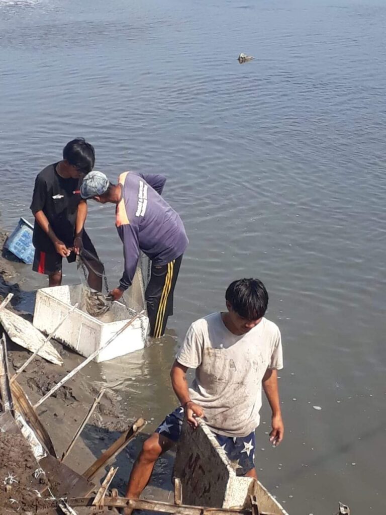Kemudian, dengan hati-hati, para siswa mulai mengevakuasi udang dari tambak. Mereka bekerja bersama-sama dengan penuh semangat, memasukkan udang-udang ke dalam keranjang dengan telaten.