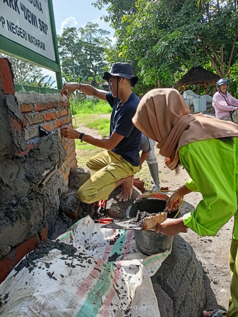Giat Hari ini adalah Pembuatan Relief Taman di depan Gedung Serbaguna Teknopark SMKPP Negeri Mataram untuk persiapan LKS Siswa.