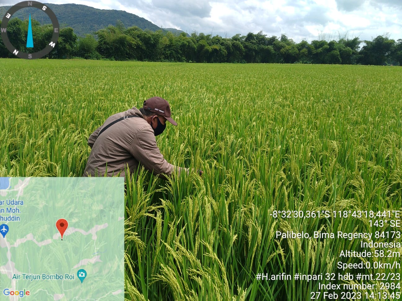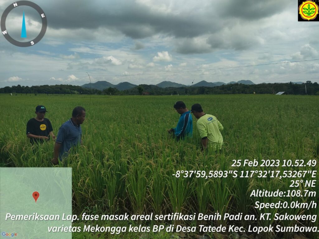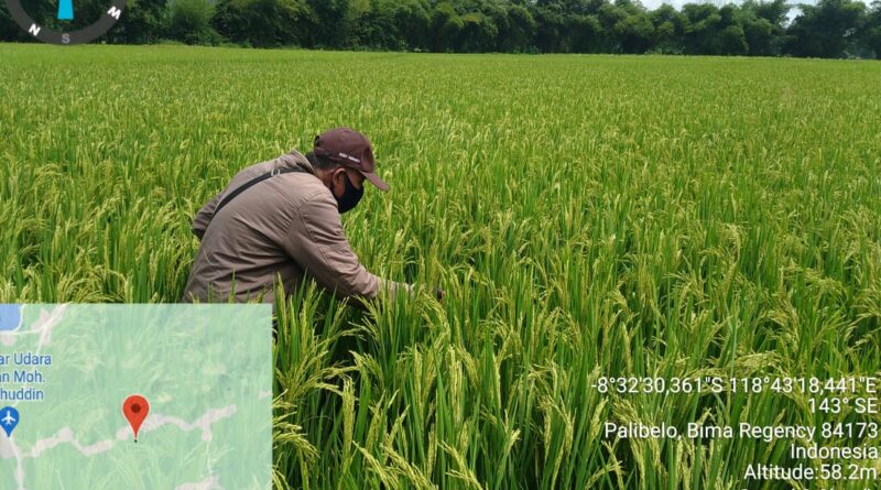 Pengawas Benih Tanaman (PBT) Pemeriksaan areal penangkaran benih padi varietas Inpari 32 HDB dan Cakrabuana MT 22/23 seluas 4,00 Ha milik H.Arifin di Desa Tonggorisa Kecamatan Palibelo Kabupaten Bima.