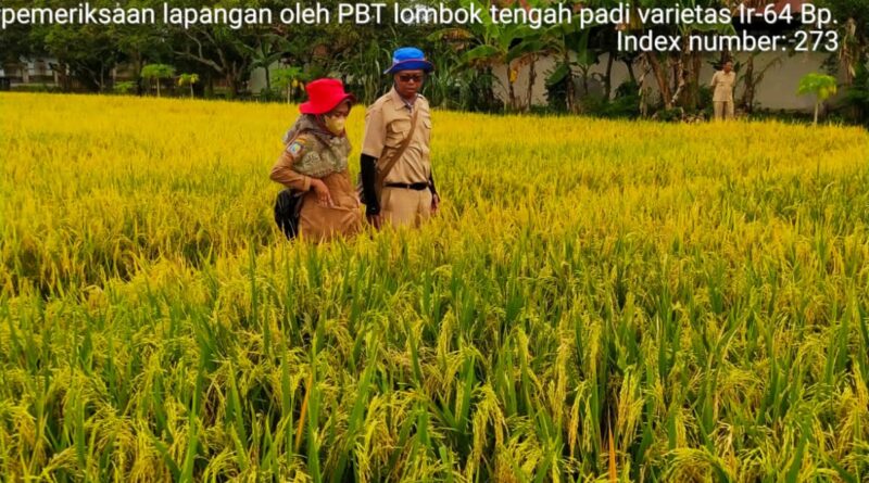 Kegiatan perbanyakan benih padi di UPB Puyung var. IR 64, kelas benih BD-BP MH. 2023 telah memasuki fase masak dan PBT lombok tengah hari ini Senin 20 feb 2023 melakukan pemeriksaan lapangan seluas 1.0 Ha. Yang berlokasi di Puyung desa Puyung kec. Jonggat lombok tengah dengan tujuan apakah pertanaman padi sudah layak menjadi benih sesuai hasil pemeriksaan CPL dan terbebas dari hama maupun penyakit di lapangan dan dari hasil pemeriksaan lapangan dinyatakan bahwa calon benih padi var. IR 64 dinyatakan layak apabila sudah memenuhi syarat pemeriksaan di atas.