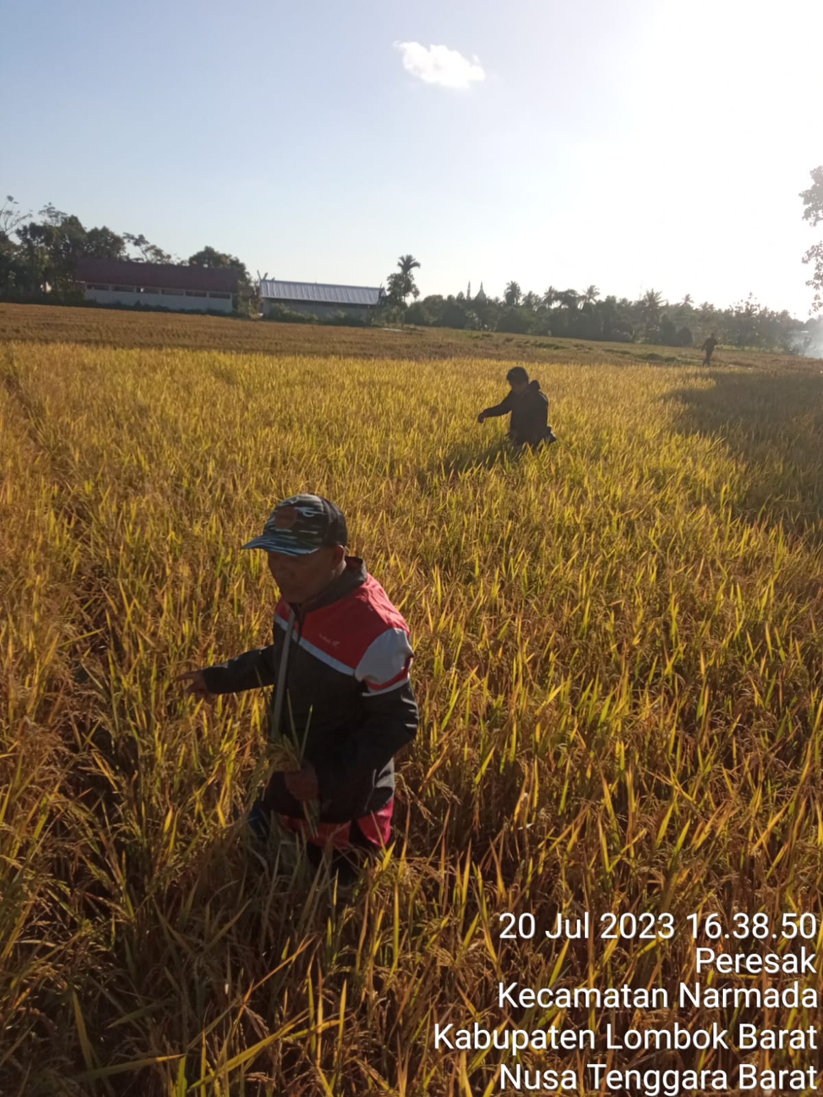 Pemeriksaan Lapangan Pertanaman Padi Varietas Cakrabuana dan Inpari – 33 di UPB Peninjauan Narmada.