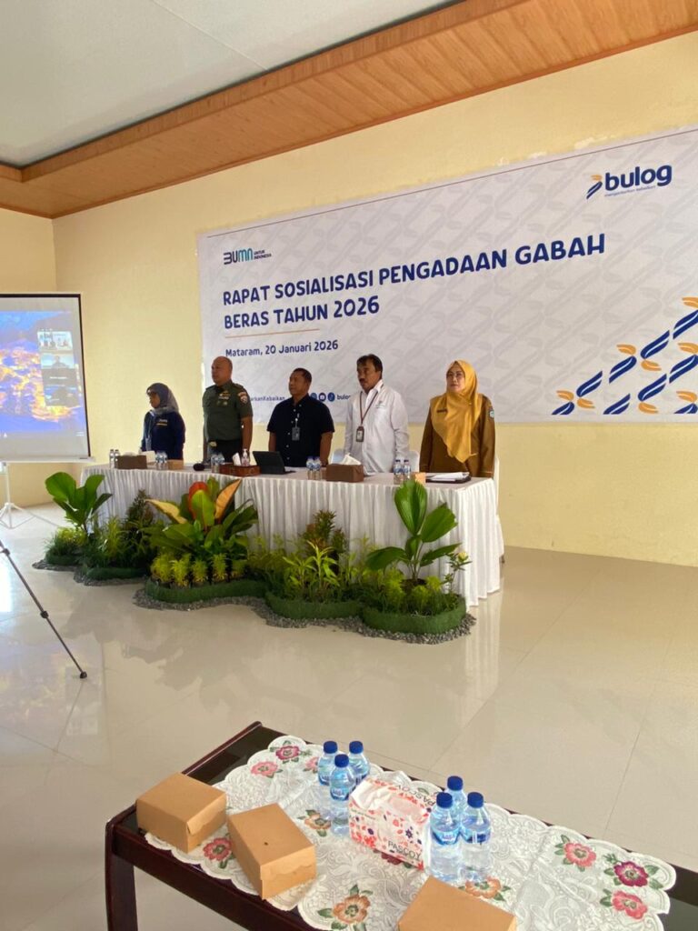 Mataram, 20 Januari 2026 — Pemerintah Provinsi Nusa Tenggara Barat (NTB) terus memperkuat sinergi lintas sektor dalam menjaga ketahanan pangan daerah. Hal tersebut ditunjukkan melalui kehadiran Pelaksana Tugas (Plt.) Kepala Dinas Pertanian dan Ketahanan Pangan Provinsi NTB pada Rapat Sosialisasi Pengadaan Gabah Dan Beras Dalam Negeri Tahun 2026 yang digelar Perum Bulog Kantor Wilayah NTB, Selasa (20/1), bertempat di Aula Perum Bulog Kanwil NTB.