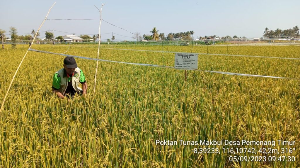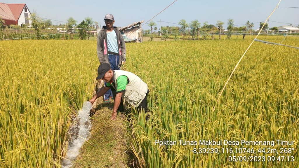 Kegiatan penanganan DPI (Dampak Perubahan Iklim) yang ditimbulkan akibat terjadinya perubahan/variabilitas iklim yaitu kekeringan yang berdampak pada komoditi tanaman padi sawah khususnya pada musim tanam 2 (dua) tahun ini, pada hari ini, 5 September 2023 di Poktan Tunas Makbul Desa Pemenang Timur Kecamatan Pemenang Kabupaten Lombok Utara.