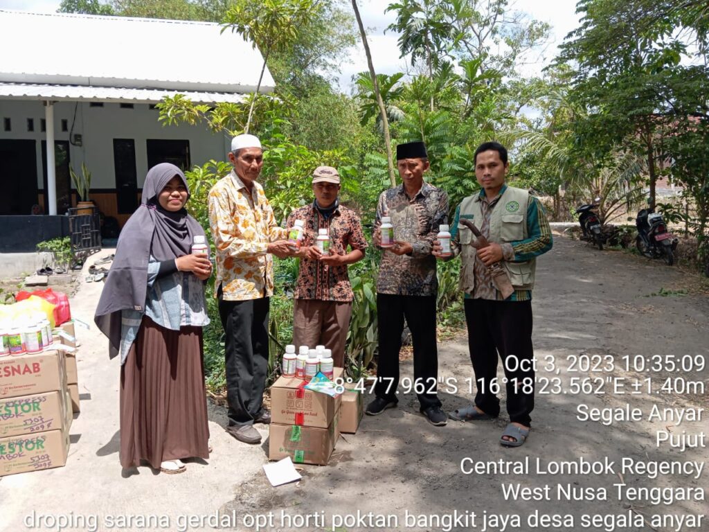 Pendampingan droping sarana gerdal Pesnab dan Pestor dari Ditjen Hortikultura Tahun Anggaran 2023 di kelompok tani Bangkit Jaya dan Patuh Pakat desa Segala Anyar, kelompok tani Pance Jaya desa Kawo, kelompok tani Bela Diri desa Gapura.