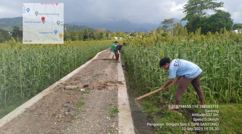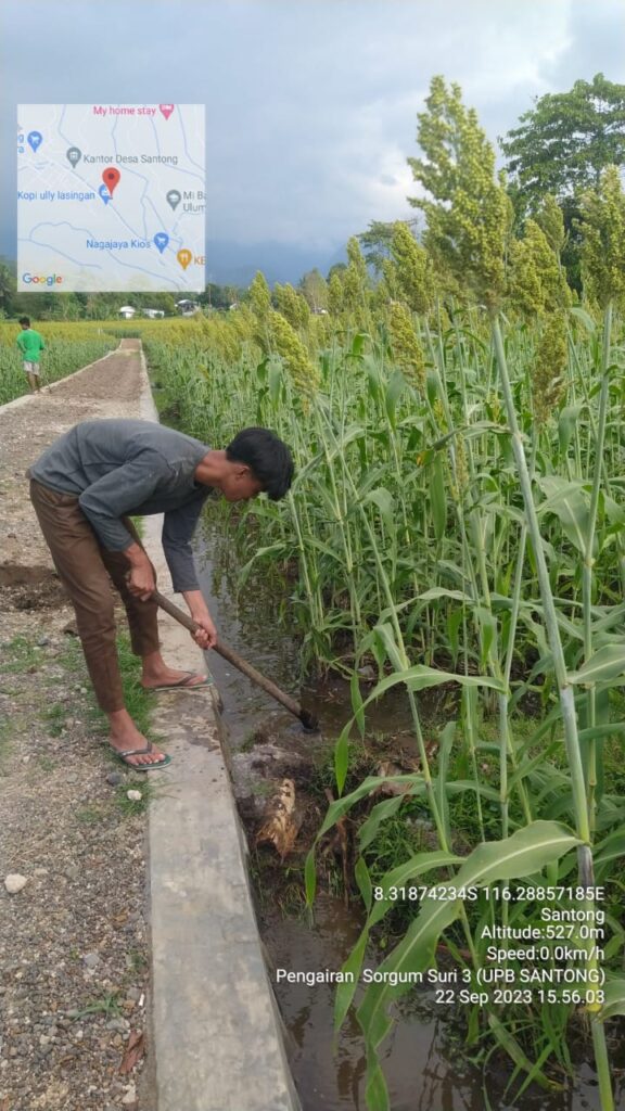 Pada kegiatan perbanyakan benih palawija BB-P di Unit Produksi Benih (UPB) Santong Pada hari senin tanggal 25 September 2023 telah dilaksanakan kegiatan pengairan pada tanaman shorgum oleh UPB Santong seluas 5.0 Ha. Dimana lokasi kegiatan perbanyakan di Santong Ds. Santong kec. Kayangan.