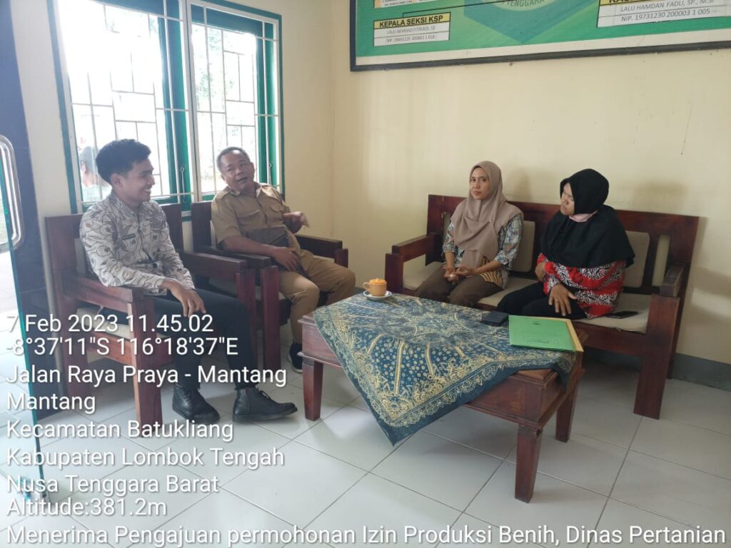 Pada hari Selasa, 7 Februari 2023 BPSB Perkebunan Provinsi NTB mendapat kunjungan dari Dinas Pertanian Lombok Barat. Pengawas Benih Tanaman (PBT) yang menerima kunjungan tersebut adalah Susilowati, S.P., Mi’raz Nur Indraeni, S.P. dan M. Syaroni.