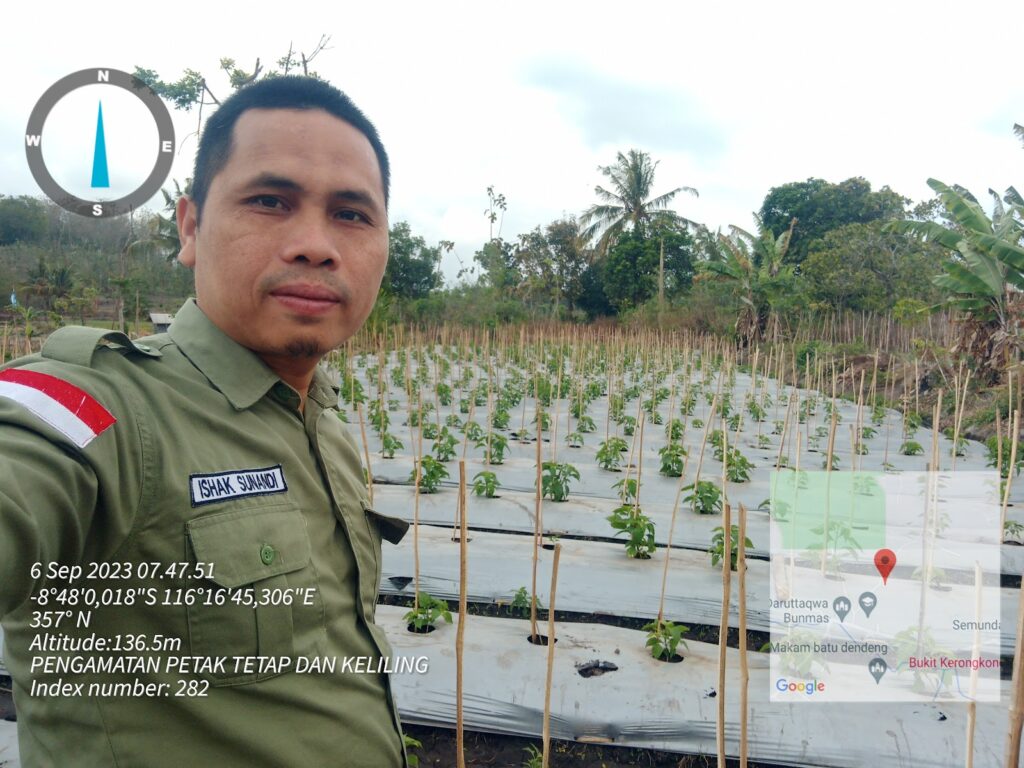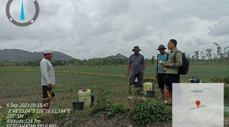 Dilanjutkan ke hamparan Buwun Mas desa Pengembur, pengamatan keliling pada tanaman bawang merah, dimana juga dirawat dengan pupuk hayati, pupuk kimia dan pestisida kimia. Ditemukan serangan ulat bawang intensitas ringan.