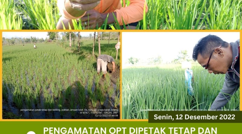 Memantau perkembangan tanaman dan memantau perkembangan tingkat keruskan tanaman oleh opt, populasi opt, keadaan dampak perubhan iklim, serta mengajak petani pengamatan.