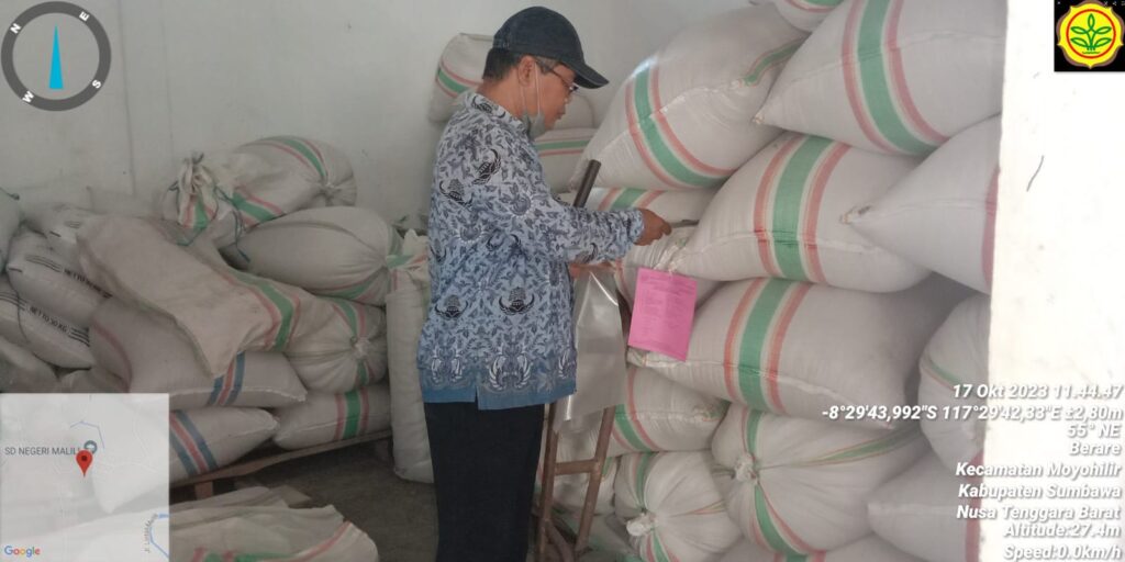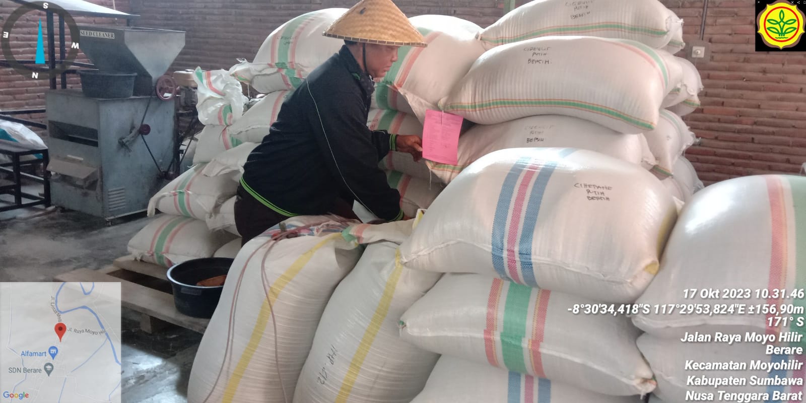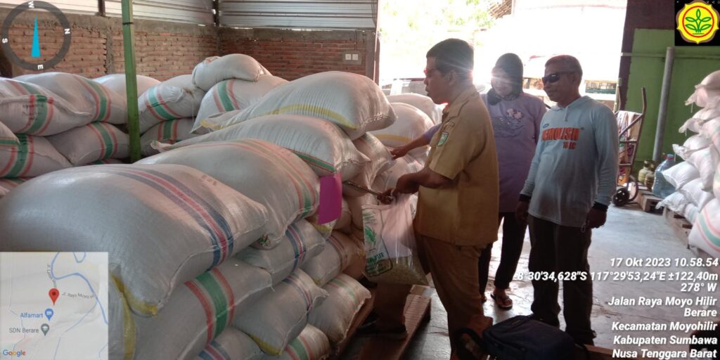 Melaksanakan pengambilan contoh benih Padi hasil MT. 2023 penangkaran benih sumber kelas Benih Dasar (label putih) di Produsen Benih PB. Telaga Makmur di Desa Berare Kecamatan Moyohilir Sumbawa Varietas Ciherang dengan stok calon Benih sebanyak 1,120 ton, varietas Cigeulis sebanyak 2,000 ton, varietas Mekongga sebanyak 1,070 ton dan varietas Inpari 32 HDB sebanyak 2,250 ton.
