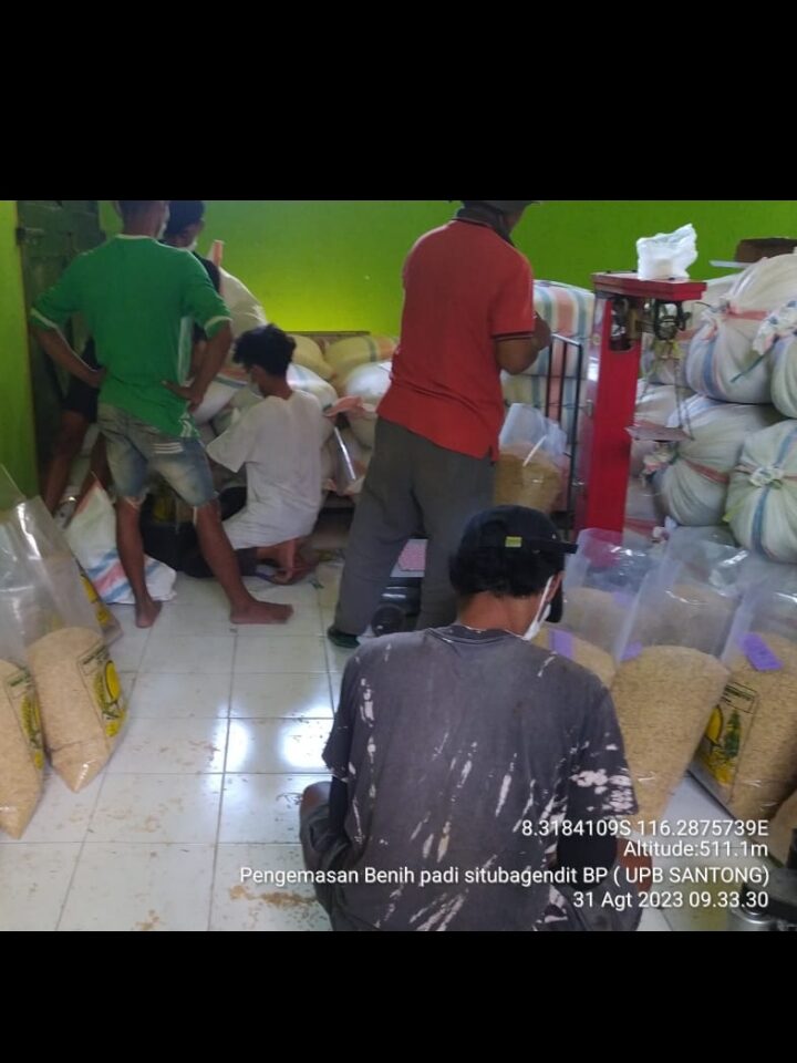 Dimana lokasi kegiatan perbanyakan di desa santong Kec. Kayangan Kab. Lombok Utara yang merupakan hasil kegiatan perbanyakan benih sumber padi musim tanam MK. I 2023, pengantongan calon benih dilakukan untuk mempermudah dalam proses pemasaran benih dan untuk memper tahankan daya tahan simpan benih selama penyimpanan di gudang termasuk menjaga perpormen mutu dan kualitas benih.