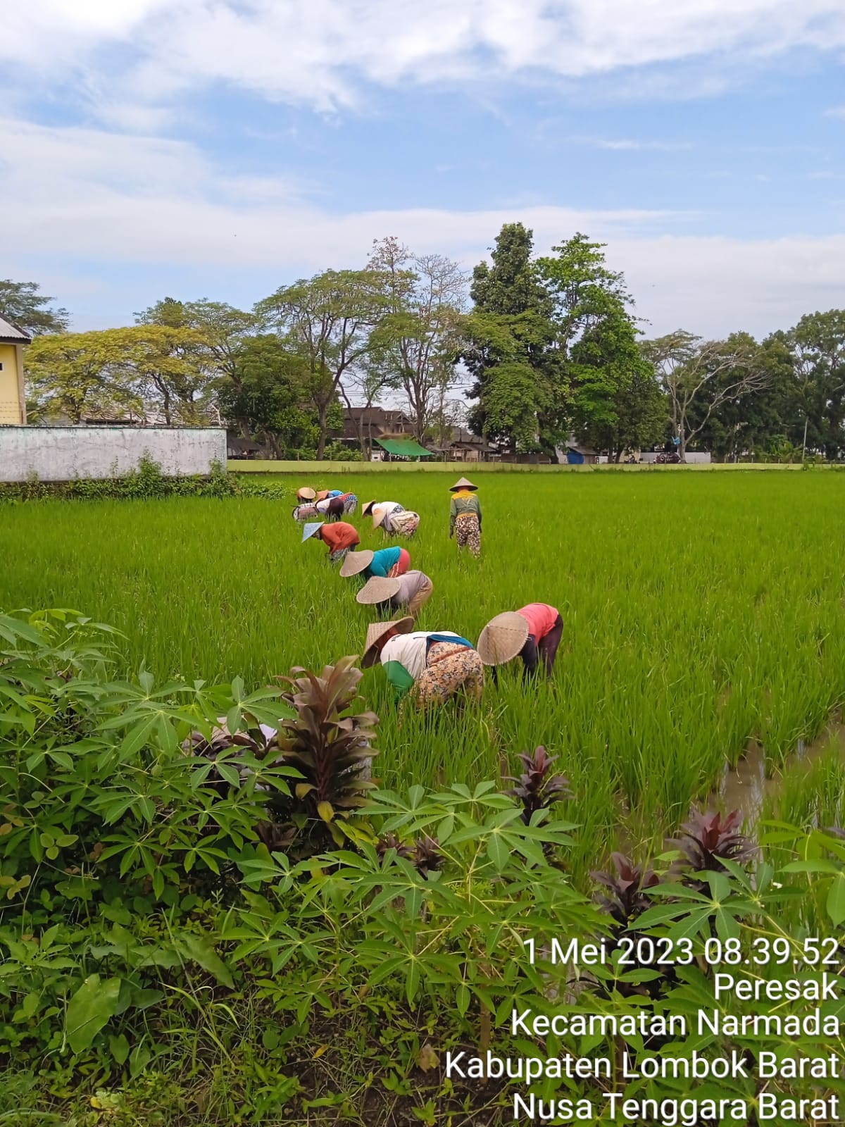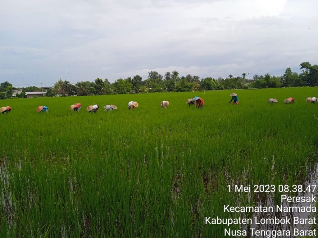 Kegiatan perbanyakan benih sumber padi MK. I 2023 di UPB Peninjauan hari Minggu tanggal 1 Mei 2023 telah melaksanakan kegiatan penyiangan secera manual untuk mengendalikan Gulma di pertanaman padi var. Inpari 45 kelas benih BD-BP seluas 2.0 ha, yang berlokasi di Peninjauan Narmada Ds. Peresak kec. Narmada Kab. Lombok Barat.